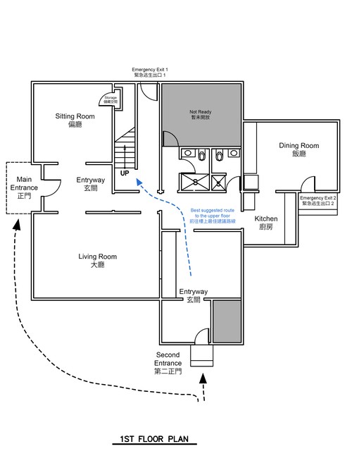 - 位於偏廳的儲藏室內有三張摺枱及椅子可供使用 (用後請放回原位)